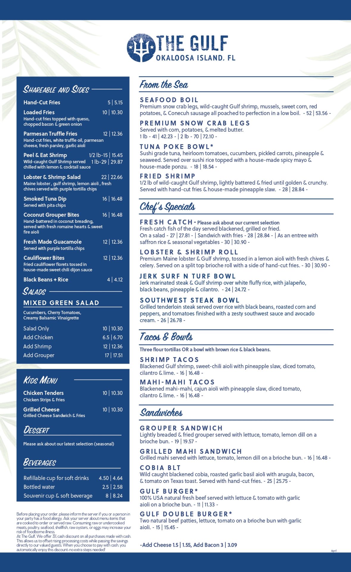 The Gulf Fort Walton Beach Dinner Menu